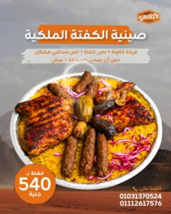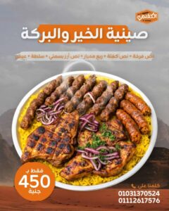نص كفتة + نص فرخة + ربع ممبار + رز بسمتي + خضار وسلطات 👌